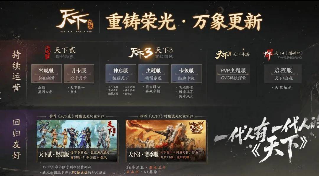 《天下》选择了一条相对更慢、也更难的路——承认市场和玩家的主流喜好不再是MMO,但它不再试图回到“所有人都在”的巅峰时刻,而是努力让仍然留下来的老玩家,玩得更久、也玩得更安心。
