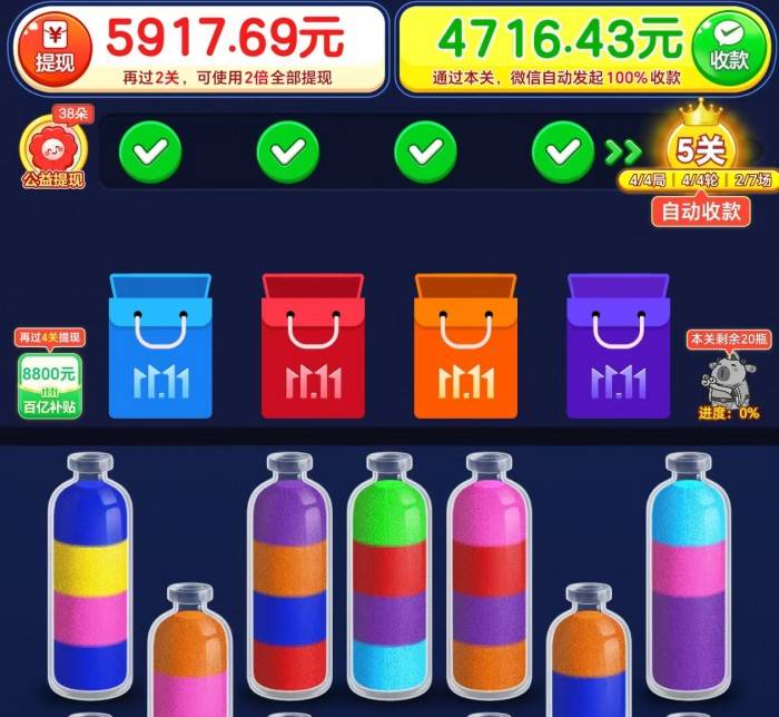 如果你想持续通过这类微信小游戏模式赚零花,这类颜色消除游戏是很好的起点。