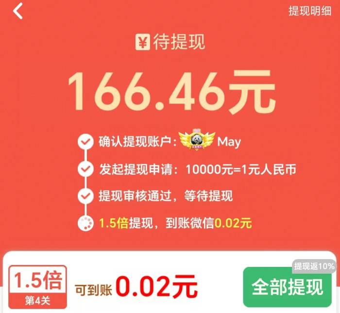 建议单次提现金额控制在10元以内,到账速度更优。如果每天利用碎片时间玩一玩,它也能成为你目标中的一个稳定补充来源。