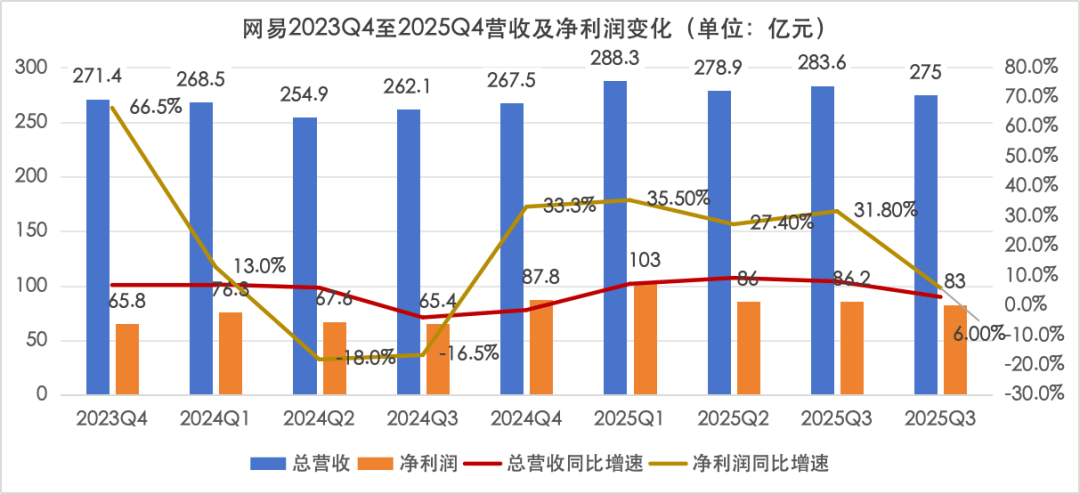 【1】2月21日,网易发布了。财报显示,2025年网易总营收达1126亿元,同比增长3%;营业利润为358亿元,同比增长21%。其中第四季度单季营收275亿元,营业利润同比增长6%至83亿元。