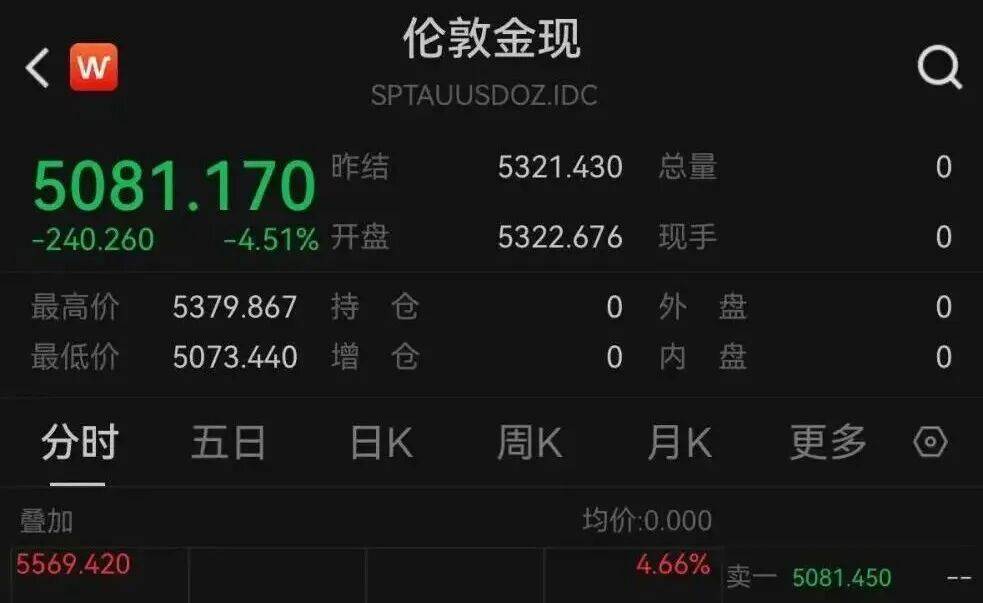 3月3日晚间,现货金银双双急跌,现货黄金大跌超4.5%,跌破5100美元/盎司,报5081美元/盎司附近。现货白银跌逾10%,已失守80美元/盎司。