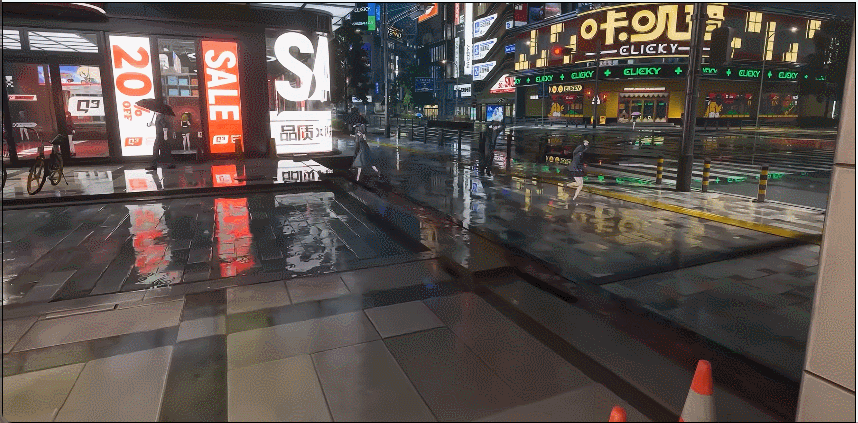 海特洛市的每一个居民都有自己的生活轨迹,边走路边看手机的低头族,雨天抱头奔跑避雨的学生等等。偶遇一个念叨着肚子饿了的路人,一路尾随,会发现他真的会走到自动售货机购买零食,匆匆路过的外卖小哥也是真的会挨家挨户的送餐。